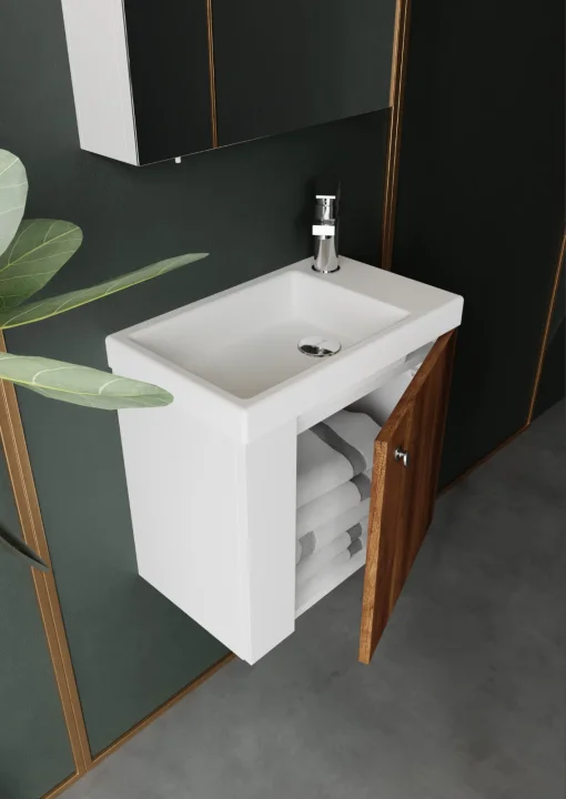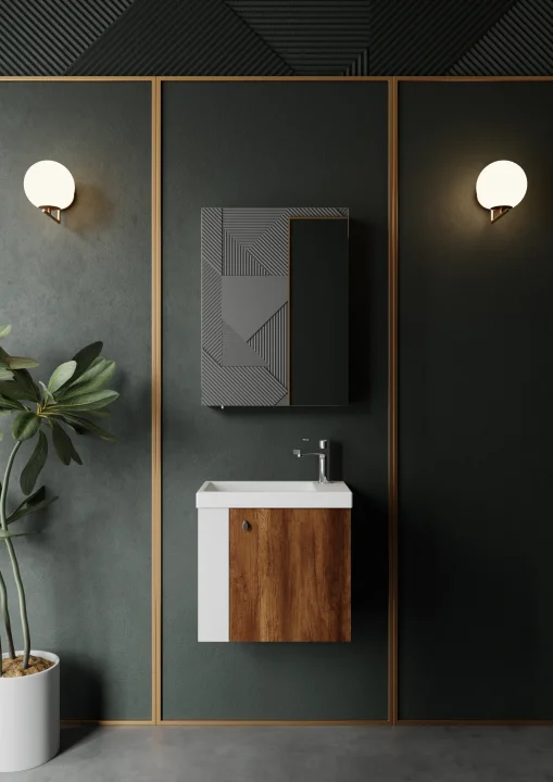 Creavit’in Forest serisi, doğal dokular ve modern çizgilerin birleşimiyle banyo alanlarına sıcak bir atmosfer kazandırıyor. 60 cm’den 120 cm’ye kadar farklı genişliklerde üretilen banyo dolapları ve lavabolar, küçük banyolarda bile maksimum depolama alanı oluşturuyor. Lavabo altı dolaplar ve çekmeceler, kişisel eşyaların düzenli şekilde saklanmasını sağlarken, koleksiyonun kompakt ölçüleri her banyo tipine uygun esnek çözümler sağlıyor.