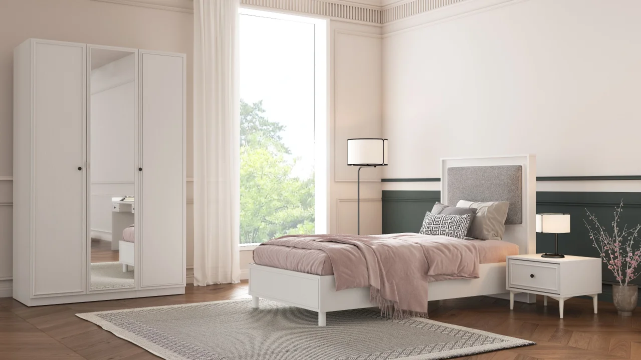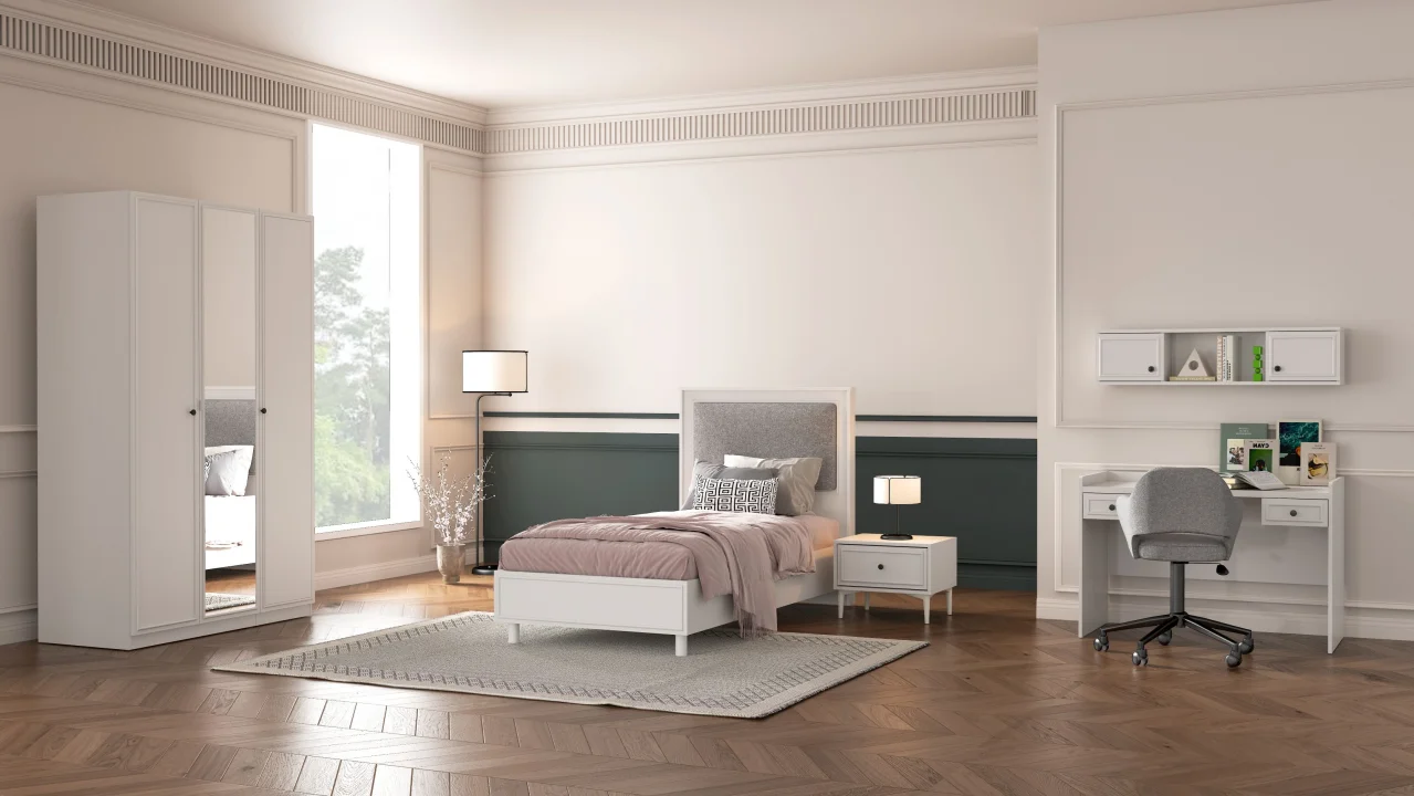 Koleksiyonun en dikkat çekici parçalarından biri olan Epsilon dolap sistemi, kullanıcıların duvar genişliğine ve ihtiyaçlarına göre 2 ila 6 kapaklı modüler kombinasyonlar oluşturmasına olanak tanıyor. Karyola başlığında yer alan ayrı takılabilir başlık minderi konforu artırırken, çalışma masası ve üst modül alan düzenini ve kişisel depolama imkanlarını destekliyor.