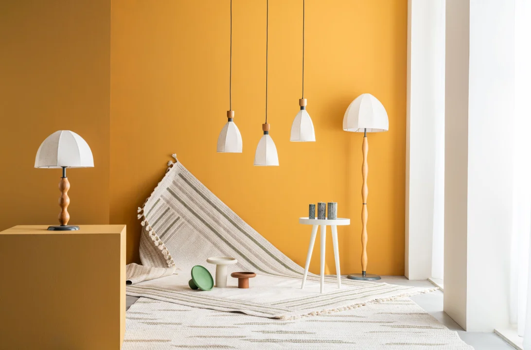 Cloud Dancer ruhunu tamamlayan aydınlatmalar, halılar ve dekoratif objeler; evlerde bütünsel, ferah ve huzurlu bir görünüm yaratıyor.