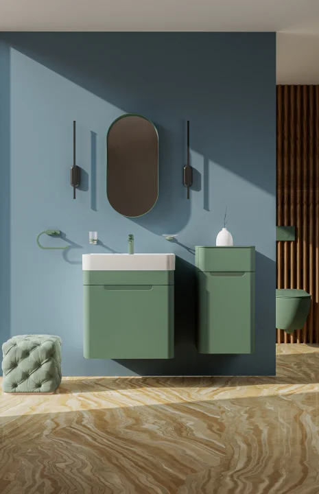 Sıcak renklerin rahatlatıcı ve iyi hissettiren psikolojik etkisi, Colorit serisinin modern tasarım diliyle birleşerek banyolarda huzurlu ancak karakterli bir atmosfer yaratıyor. Creavit Colorit serisi, rengin gücünü fonksiyonel tasarımla bir araya getirerek banyoyu kişisel yaşam alanına dönüştüren güçlü bir tasarım yaklaşımı ortaya koyuyor.