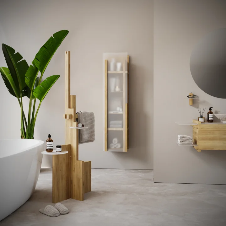 Oniva serisi; masif ahşap kullanımı, modüler yapısı ve bütüncül banyo çözümleriyle sürdürülebilir tasarım anlayışını yansıtıyor. Lavabo dolapları, boy dolapları, raf sistemleri, aynalar ve tamamlayıcı üniteler; doğal malzemeler, dayanıklı yapı ve uzun ömürlü kullanım prensipleri doğrultusunda geliştiriliyor.
