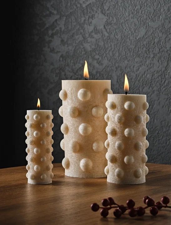 Krem tonlarıyla zarif bir görünüm sunan Brute Mum, amber rengi Juana Vazo ile kullanıldığında kış aylarının sıcak ve davetkâr atmosferini tamamlayan etkileyici bir kombin oluşturuyor.