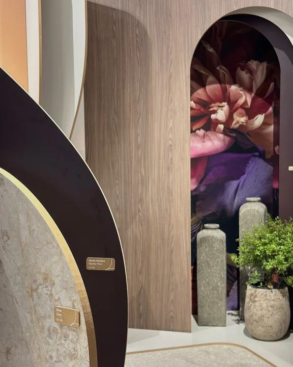 Fuar boyunca ulusal ve uluslararası ziyaretçileri standında ağırlayan Yıldız Entegre, en yeni koleksiyonu Glam & Calm ile öne çıktı. Koleksiyon, yalnızca renk ve desenlerden oluşan bir serinin ötesine geçerek, zamanın, ışığın ve doğanın izlerini yüzeylere taşıyan bir tasarım yolculuğu sağlıyor.